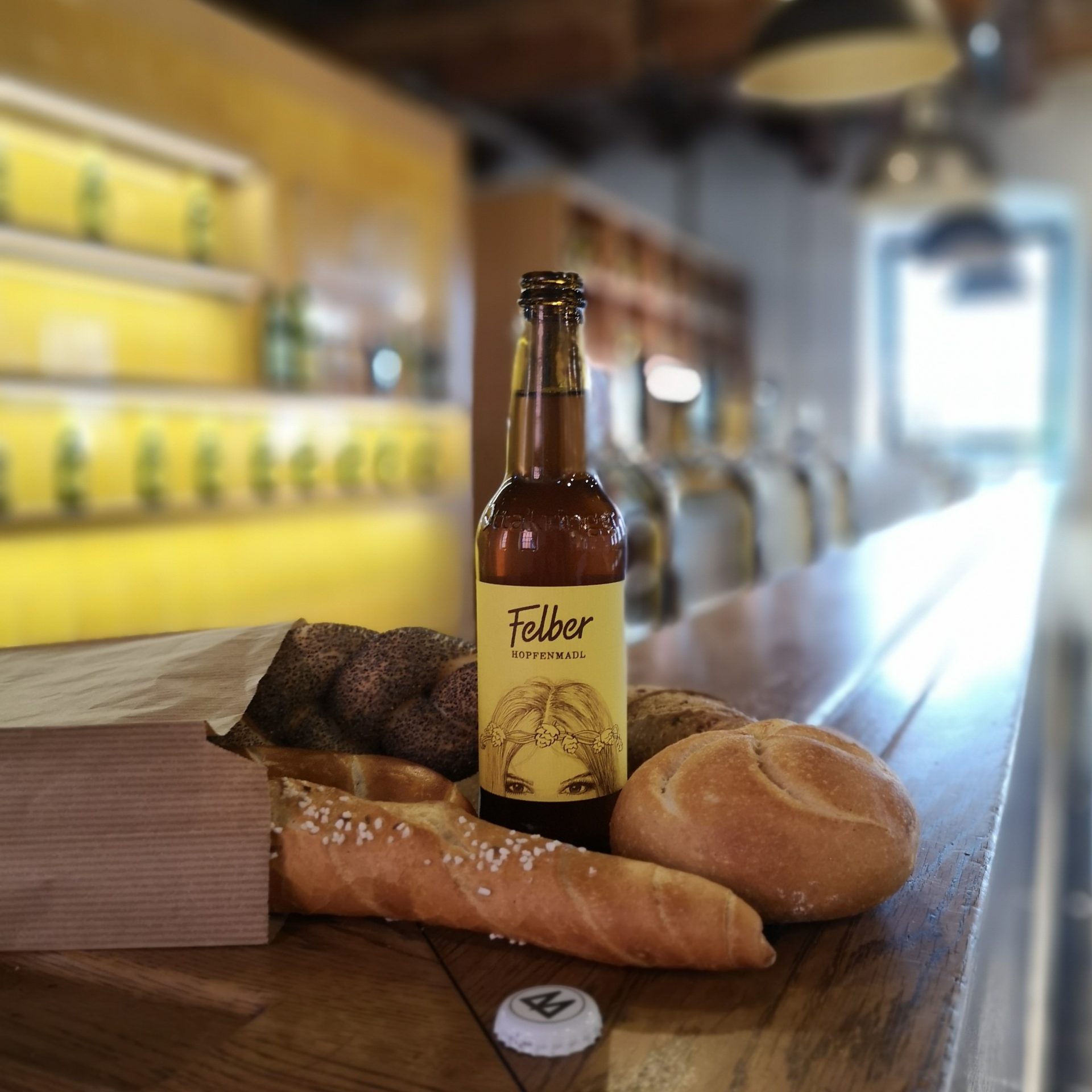 — Hopfen-Madl, fruity-hoppy, refreshing and happy to drink, is looking for a baking-fresh partner for moments of enjoyment together! Bread and beer are a dream couple already for decades. Hop on!