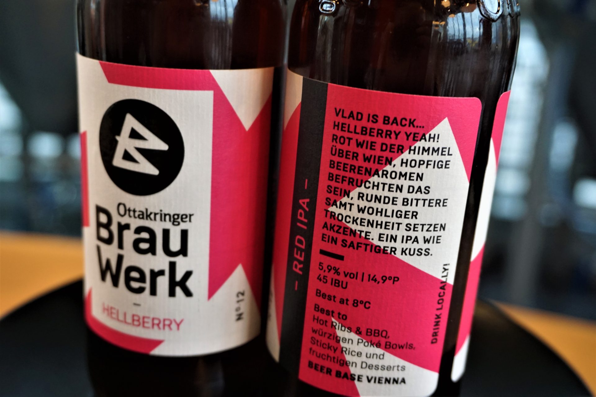 Rot wie der Himmel über Wien, hopfige Beerenaromen befruchten das Sein, runde Bittere samt wohliger Trockenheit setzen Akzente.
