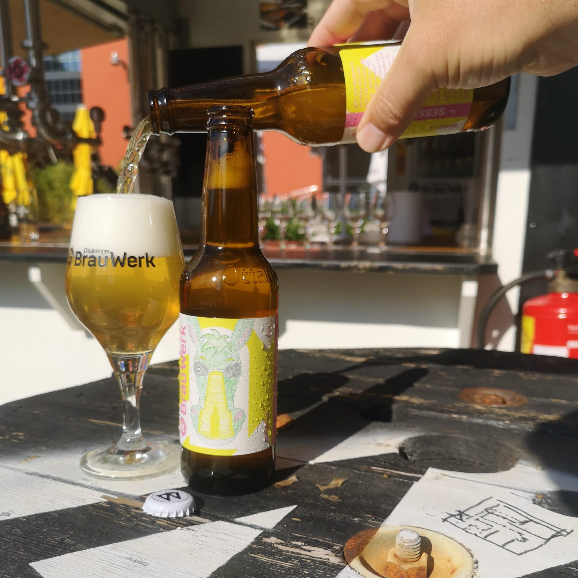 Strahlend Hellgelbe Farbe, feinporiger, langanhaltender stabiler Schaum; in der Nase grasig, grün & frisch; süffig und schlank im Antrunk, angenehme milde Herbe die erfrischt – ein MUSS für die letzten Sommertage!